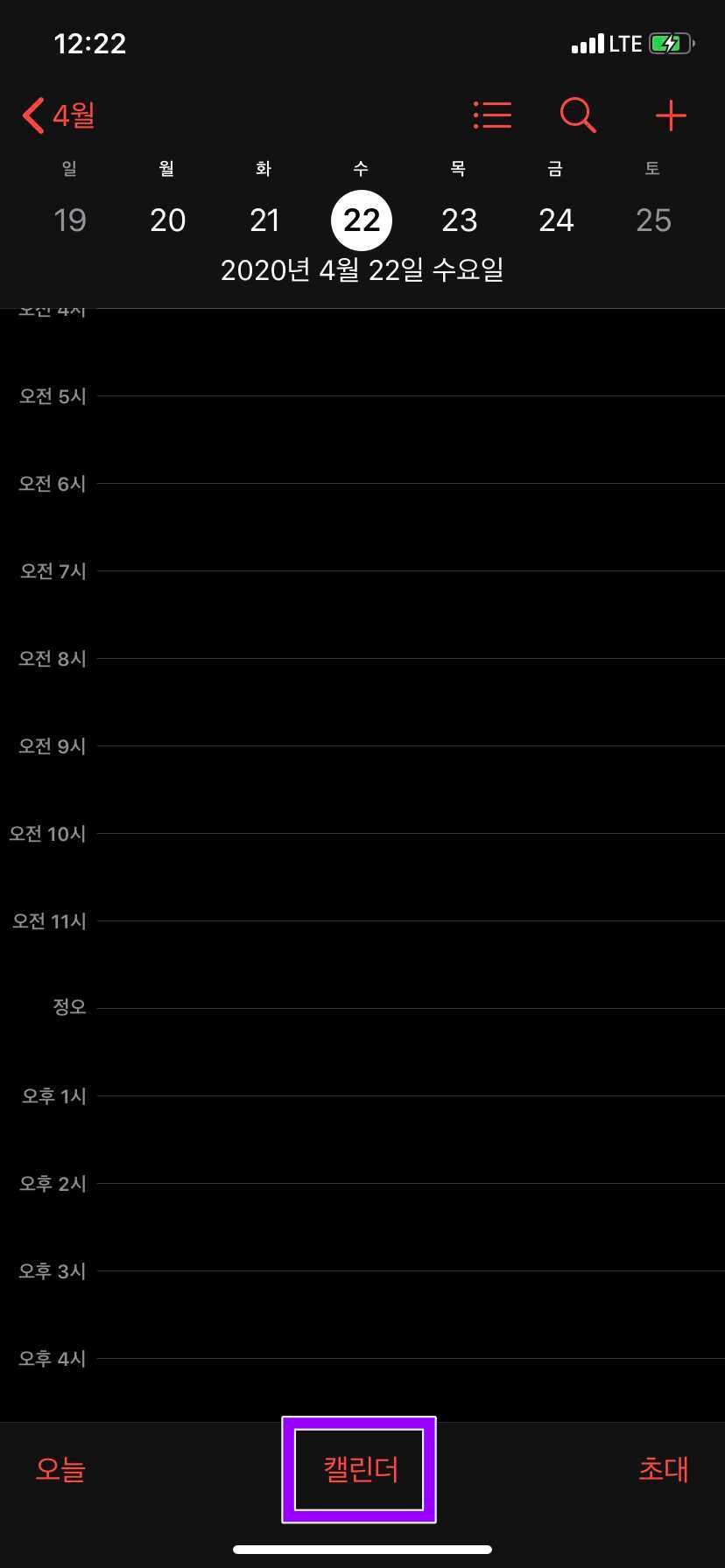 캘린더 앱을 실행한 후 하단의 캘린더 버튼을 눌러주세요.